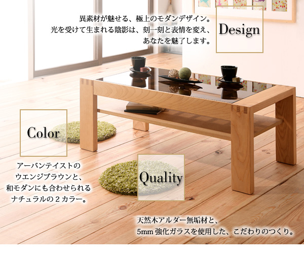 美しい輝きのガラス天板×天然木の格子細工。異素材が魅せる、極上のモダンデザイン。